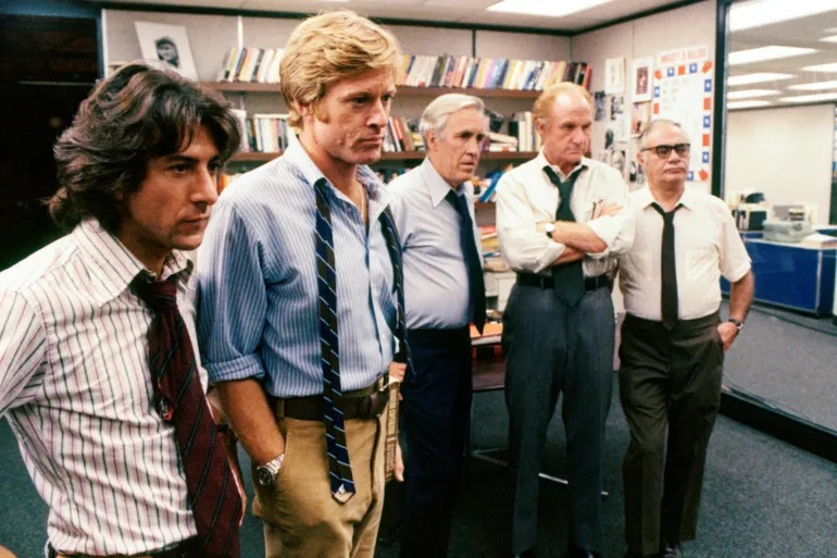 يعد فيلم “كل رجال الرئيس” (All the President’s Men) الذي أخرجه آلان جيه باكولا عام 1976 وقام ببطولته روبرت ريدفورد وداستن هوفمان، حجر الزاوية في سينما التحقيق السياسي؛ حيث يوثق رحلة مراسلي “واشنطن بوست” لكشف فضيحة ووترغيت التي انتهت باستقالة الرئيس ريتشارد نيكسون.