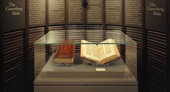 وطُبع إنجيل جوتنبرج باستخدام مطبعة متحركة اخترعها يوحنا جوتنبرج في ألمانيا في القرن الخامس عشر. وما زالت عشرات المجلدات فقط من تلك الطبعة موجودة، ويبذل الباحثون جهودا حثيثة لجمع معلومات بخصوص الأجزاء المتناثرة منها.