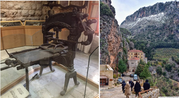 و… تدخل متحف “دير ما أنطونيوس قزحيا”, تدور بعينيك على نفائس فيها طيب التراث وعبق التاريخ, مخطوطات, كتب قديمة نادرة,  أدوات كتابة… وتقف دَهِشاً أمام أول مطبعة عرفها لبنان والعالم العربي, التي إستقدمها الى “دير ما أنطونيوس قزحيا” سنة 1610 تلاميذ “المدرسة المارونية في روما”.