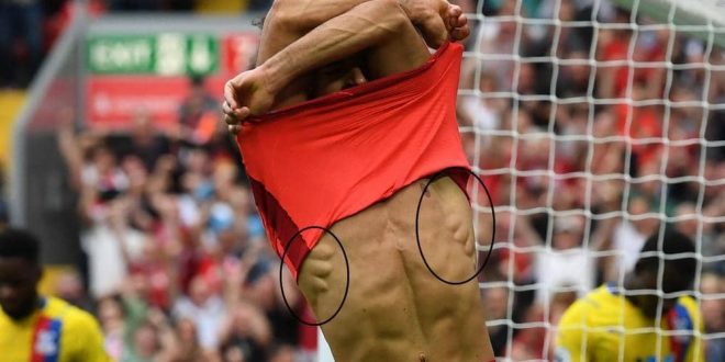 فعندما خلع صلاح قميصه للاحتفال بالهدف، رصدت الكاميرات عضلتين على جانبي صدر اللاعب تشبهان أجنحة الطيور، في مشهد غير معتاد بالنسبة للاعبي كرة القدم وبينما شكك البعض في صحة الصورة، فإنها حقيقية تماما، والتقطها بول إليس مصور وكالة “فرانس برس” من ملعب “أنفيلد”.