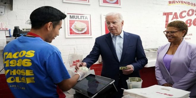 توقف الرئيس الأمريكي جو بايدن، يوم الخميس، عند مطعم “Tacos 1986″، وهو مطعم مكسيكي شهير في جنوب كاليفورنيا، لشراء وجبة دجاج “كويساديلا”.