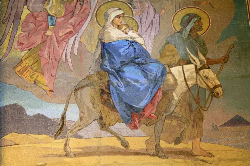 جدارية لرحلة العائلة المقدسة في مصر في كنيسة المخلص على الدم المراق أو كاتدرائية قيامة يسوع في مدينة سان بطرسبرغ الروسية