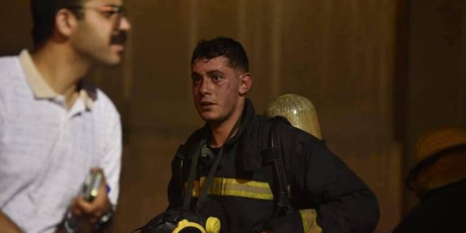 خلال ساعات طويلة ساهم الملازم أول نور امتياز كامل في إخماد حريق سنترال رمسيس وتقديم الدعم وإنقاذ العالقين في المبنى بمعاونة من زملائه.