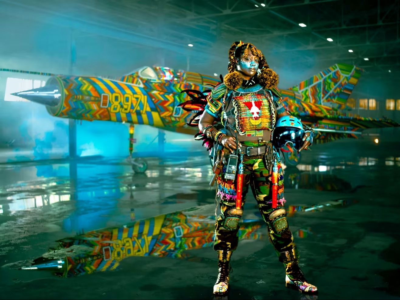 بعد ذلك، في العام 2016، انتقل زيمان إلى تزيين شاحنة كاسبِر، وهي مركبة مصفّحة مقاومة للألغام صُمّمت للشرطة الجنوب أفريقية ونُشرت في البلدات، التي أصبحت “رمزًا مكروهًا للفصل العنصري”. في العام 2019، تحدى زيمان نفسه بتزيين طائرة ميغ-21 كاملة بالخرز. أما عن سبب اختياره للطائرة المقاتلة من الحقبة السوفيتية، أكثر الطائرات العسكرية إنتاجًا في العالم، فيحتاج إلى بعض الشرح.